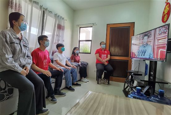 菲律賓項目人員在當(dāng)?shù)氐母綦x酒店收看直播